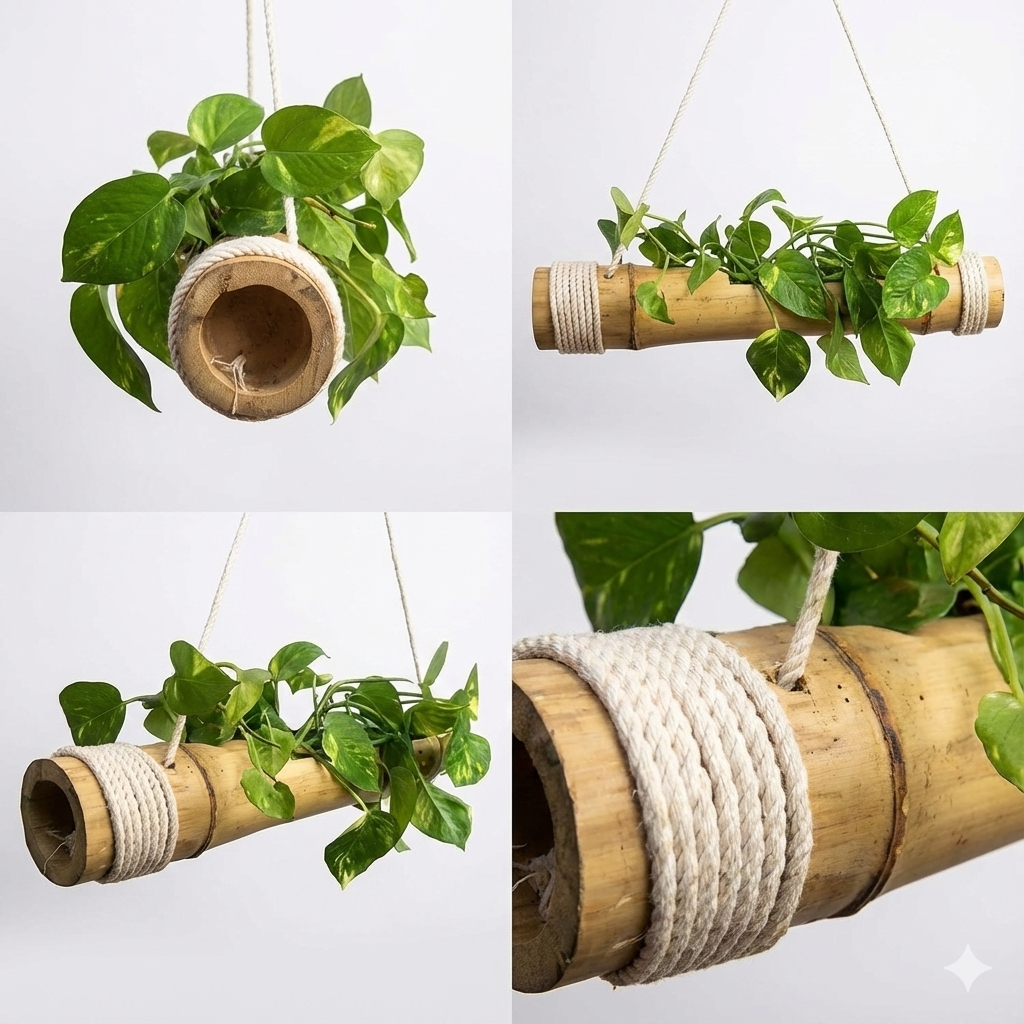 ✅ Versatile Usage: You can use this Bamboo Hanging Planter for real plants (like Money Plant, Spider Plant, Wandering Jew) or even for artificial hanging vines.