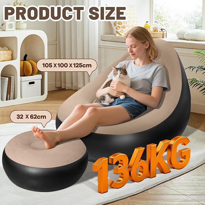 AearKing Inflatable Sofa with Footstool, Inflatable Chair, Waterproof Air Sofa, Inflatable Chair, Sofa and Couch with Flocked Surface for Living Room, Couch, Inflatable Outdoor Camping