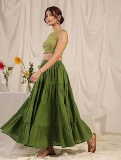 Together: Wear the red top and green skirt together with some tan strappy sandals and silver jhumkas for the ultimate bohemian vibe.