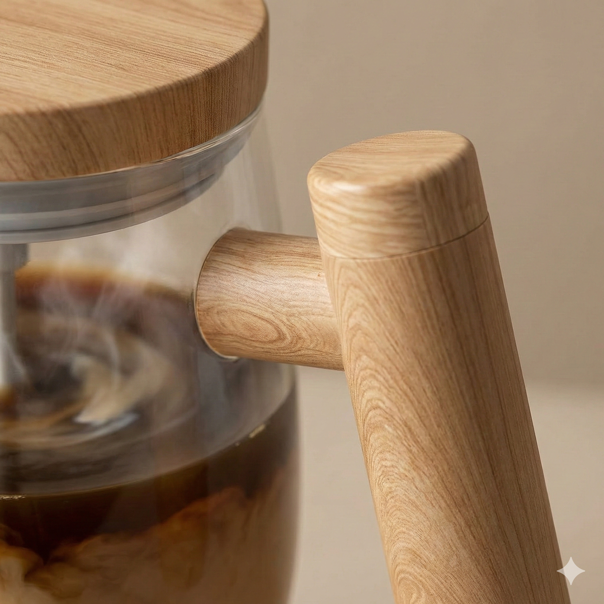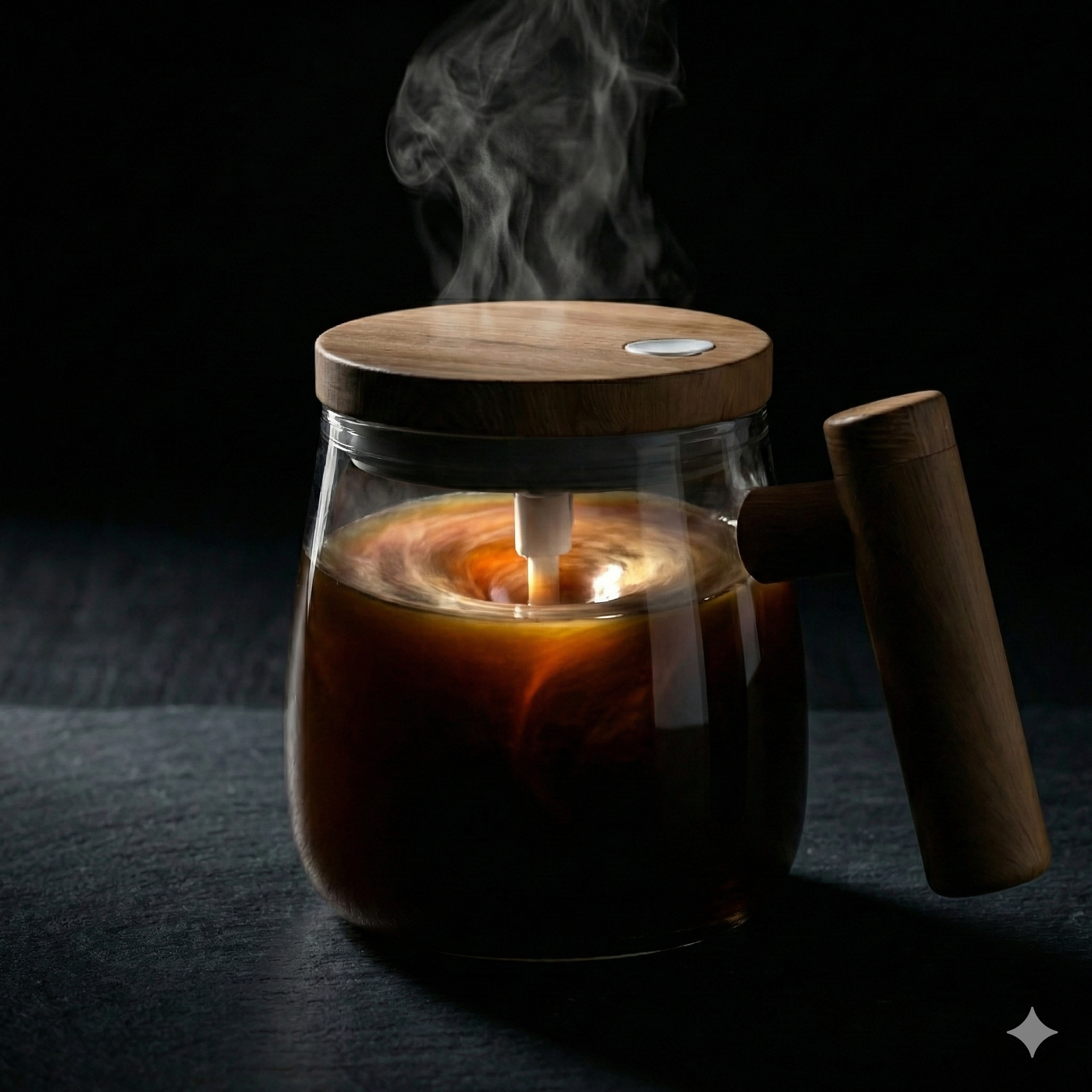 This is the coolest feature. In older models, people often lost the tiny magnetic pill. The Quenship mug has a genius design: the Wooden Handle acts as a storage holder. When you are not mixing, you can remove the stir bar and insert it securely into the handle. You will never lose it again!